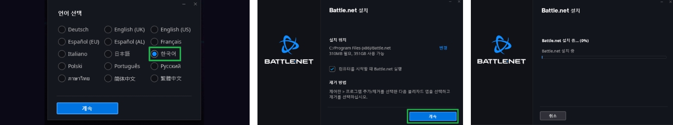 1. 스타크래프트 설치 클라이언트인 배틀넷을 실행시킵니다.
