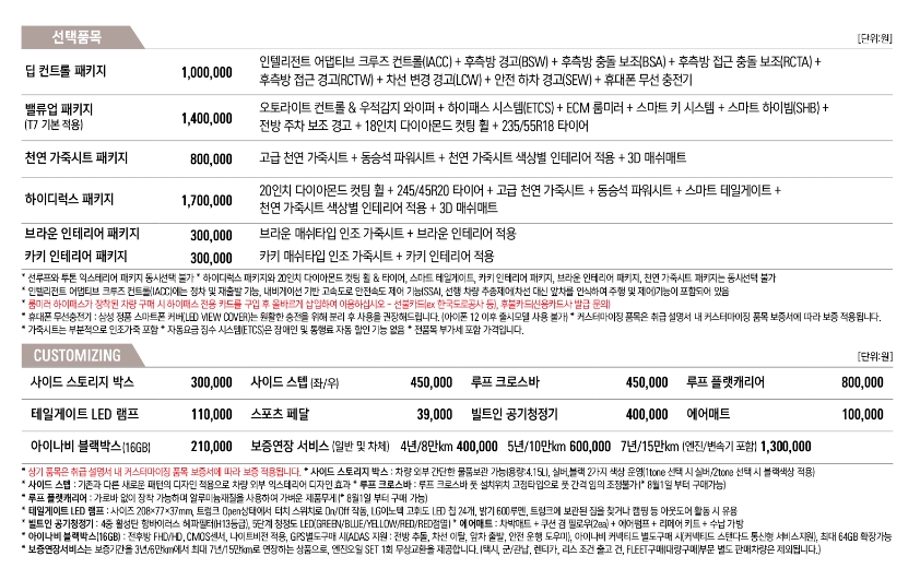 선택사항 미포함시 기본가격 3,020만원 + 취득세(일반) 1,921,818원 = 총 예상금액 32,121,818원 입니다.