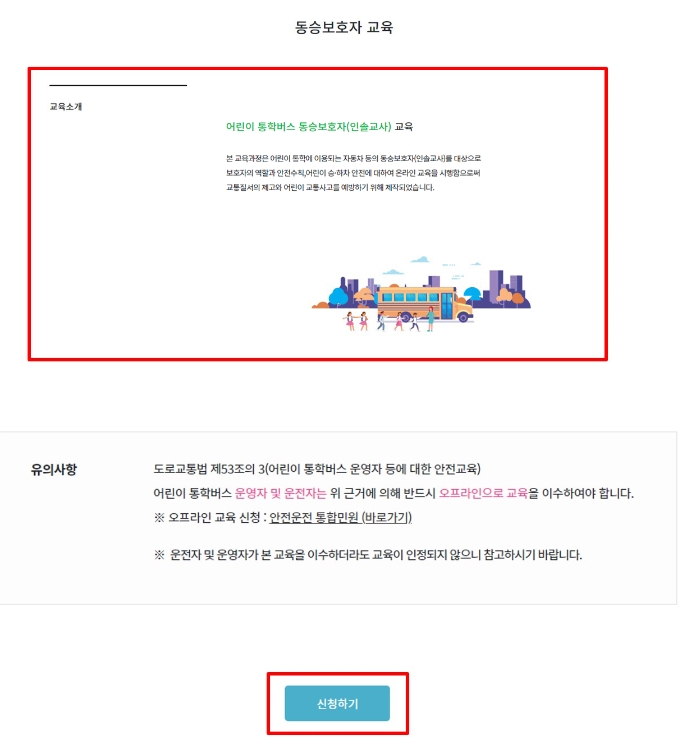 어린이 통학버스 교육 이수 안내 : 2021. 3. 10.(수)부터 어린이통학버스 운영자, 운전자, 동승보호자 모두 온라인 교육 신청이 가능합니다.