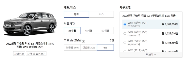 - GV80 장기렌트의 경우 업체마다 조금 상이하며 보증금 비율에 따라서도 상이합니다.
