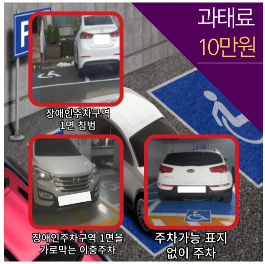 - 장애인 주차구역 2면 이상을 침범해서 주차를 방해하는 경우