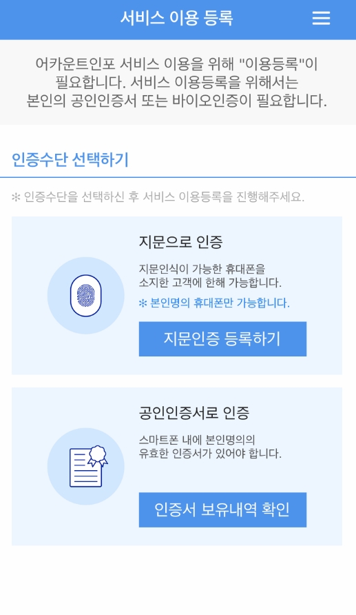 - 서버가 불안정하거나 접속 인원수가 많을 경우에는 계좌 인증에 실패하는 경우가 있을 수 있으니 차후 이용하시기를 바랍니다.