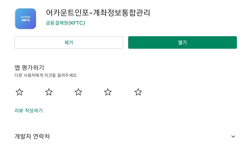 어카운트인포 앱 내려받기 : https://play.google.com/store/apps/details?id=com.kftc.payinfo.android
