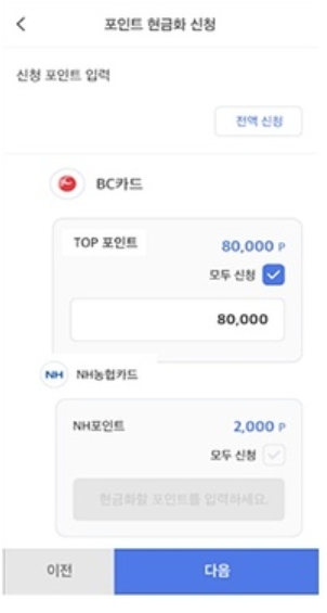 4.현금화 하고 싶은 포인트를 클릭 후 [다음]을 누르시면 됩니다.
