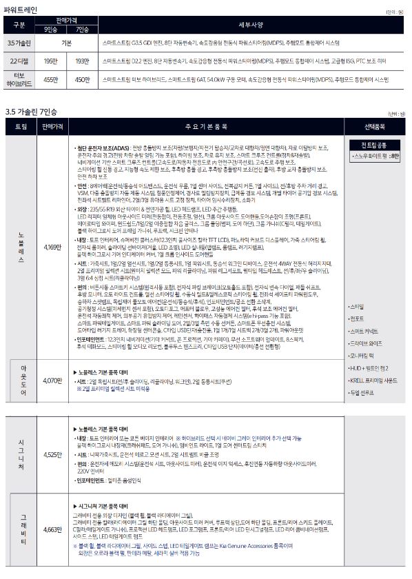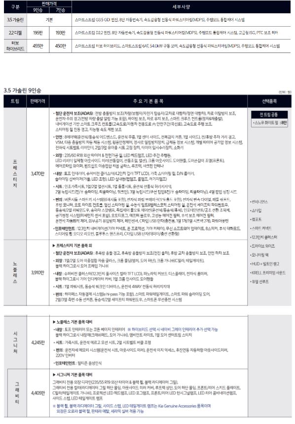 | 카니발 하이브리드 | 트림 | 배기량 | 연비 | 가격 |