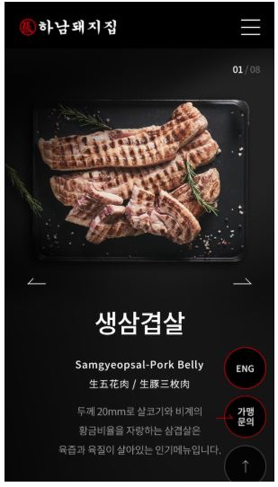 - 생삼겹살 : 하남돼지집의 주 메뉴로 두께는 20mm로 살코기와 비계의 황금비율을 자랑하는 인기메뉴중에 TOP
