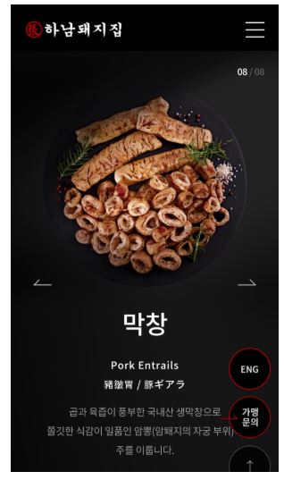 - 막창 : 하남돼지집의 별미로 곱과 육즙이 풍부한 국내산 생막창