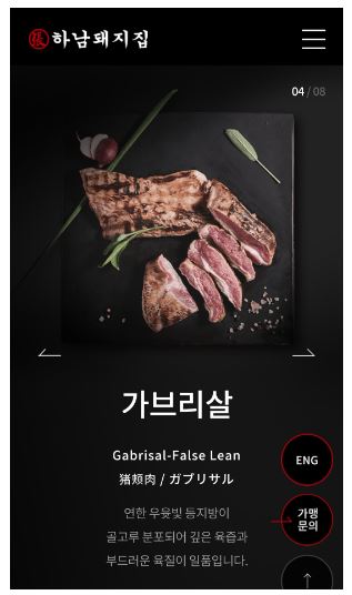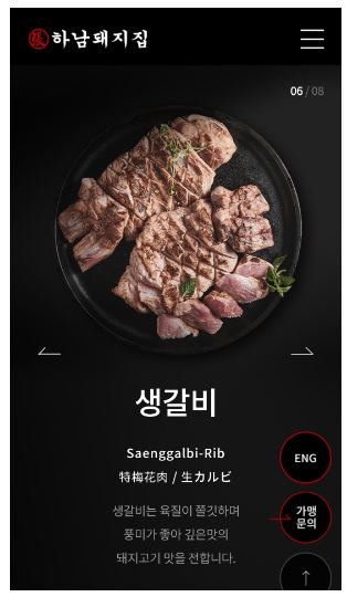 - 생갈비 : 돼지고기의 육질이 쫄깃하면서 풍미가 좋은 생갈비