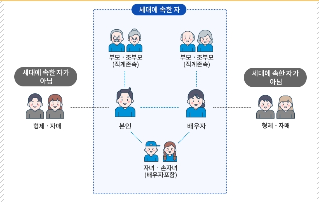 • ※ 배우자 분리세대인 경우 배우자 및 배우자와 동일한 세대를 이루고 있는 직계존속(배우자의 직계존속 포함) 및 직계비속(직계비속의 배우자 포함)을 포함