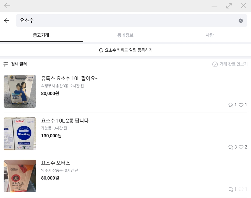 현재 요소수 가격이 2배 이상 뛰었고 5배를 주어도 팔지 않고 있습니다. 온라인에서는 이미 품절입니다. 전에는 요소수 10리터에 2만원이였는데 지금은 5만원 이상의 가격을 주고도 구할 수 없는 상황이며 당근마켓에서는 요소수를 13만원에 팔고 있습니다. 심각함이 느껴집니다.