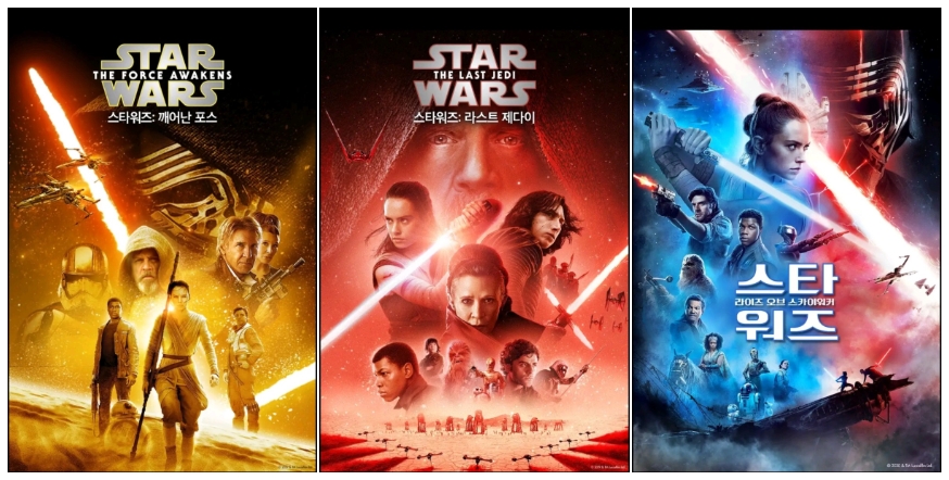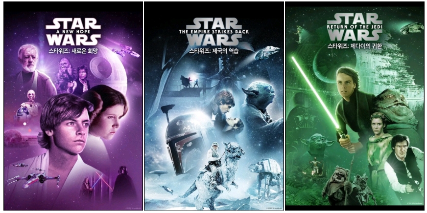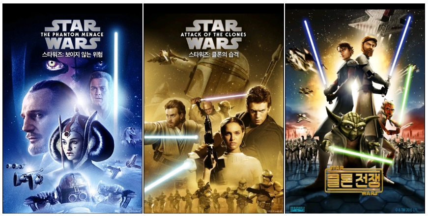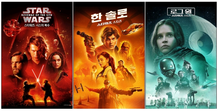 스타워즈는 마블보다 세계관이 단순한 편이라 시리즈가 많지 않습니다. 프리퀼 3부작, 오리지널 3부작, 시퀄 3부작, 외전 3편이 있습니다.
