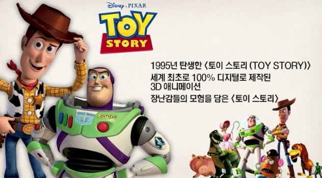 픽사는 1986년 캣멀과 잡스, 존 라세터가 캘리포니아에 만든 애니메이션 제작사입니다. 픽사 하면 유명한게 토이스토리 입니다. 세계 최초로 100% 디지털로 제작된 3D 애니메이션으로 북미 시장에서 박스오피스 1위를 달성했습니다.