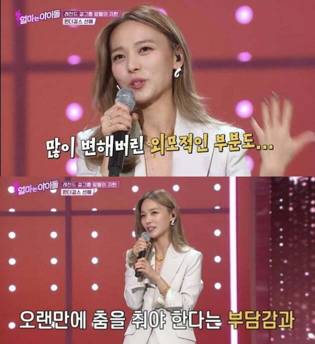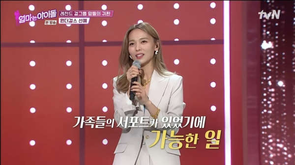 엄마는 아이돌에 출연하여 1화에서 유일하게 보컬과 댄스 부분에서 "상"평가를 받았습니다. 보컬 무대는 윤하의 "기다리다"를 했으며, 댄스 무대는 방탄소년단의 'Butter'를 했다. 두 무대 모두 탄탄한 실력과 여유, 안무에는 원더걸스의 시그니처 안무들을 첨가하는 센스 등으로 참가자, 심사위원, 방청 아이돌들에게 극찬과 환호를 받았습니다. 눈물을 보이는 출연자들도 있었으며 앞으로의 행보에 기대를 받으며 퇴장했습니다.